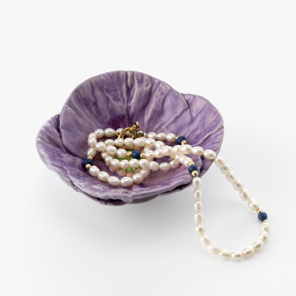 Originální keramická mistička v podobě fialového máku zaujme svou hloubkou a nevšedností. Fialová glazura působí tajemně a sofistikovaně, ideální pro interiéry, kde hrají roli výrazné doplňky s uměleckým nádechem.